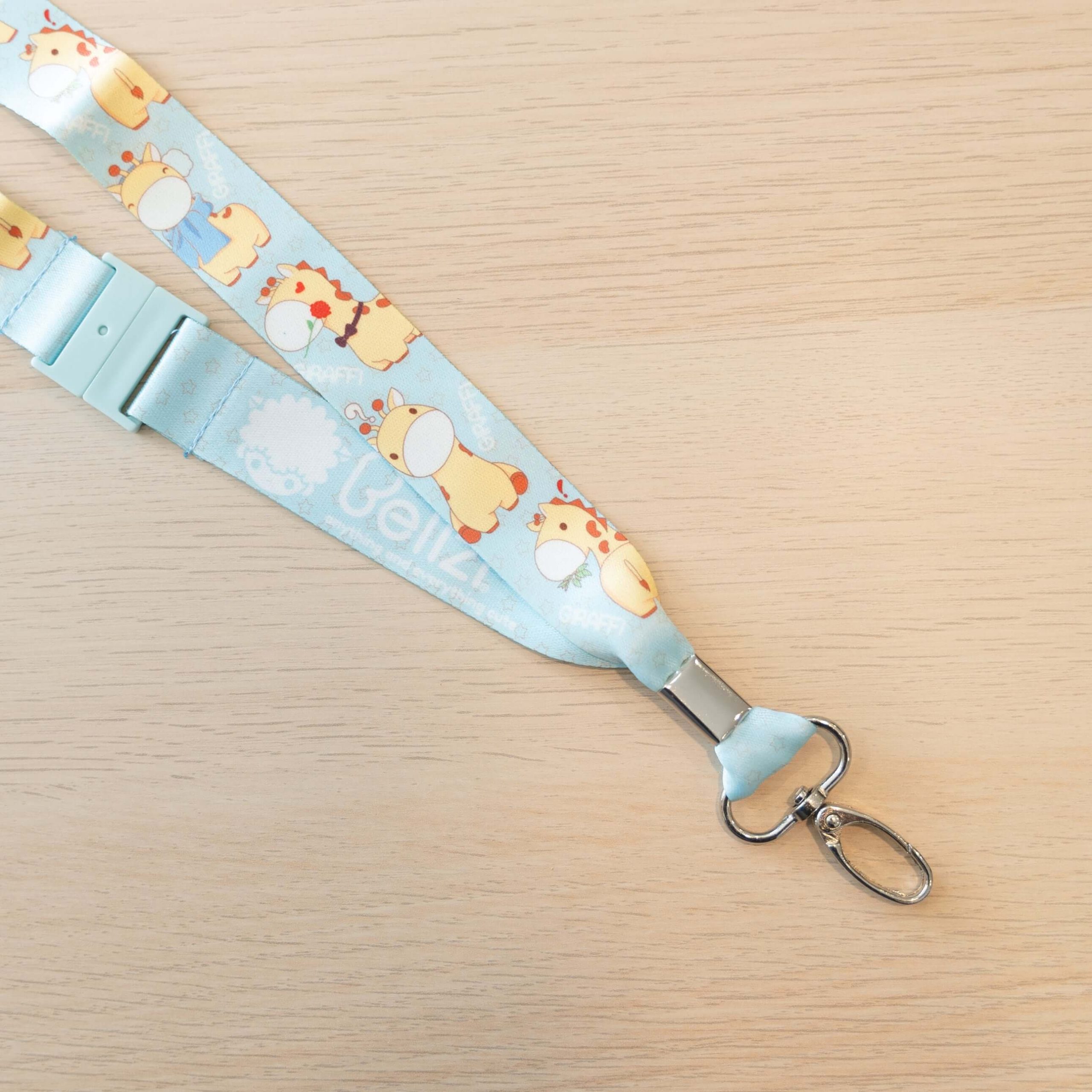 - Light blue and beige giraffe lanyard